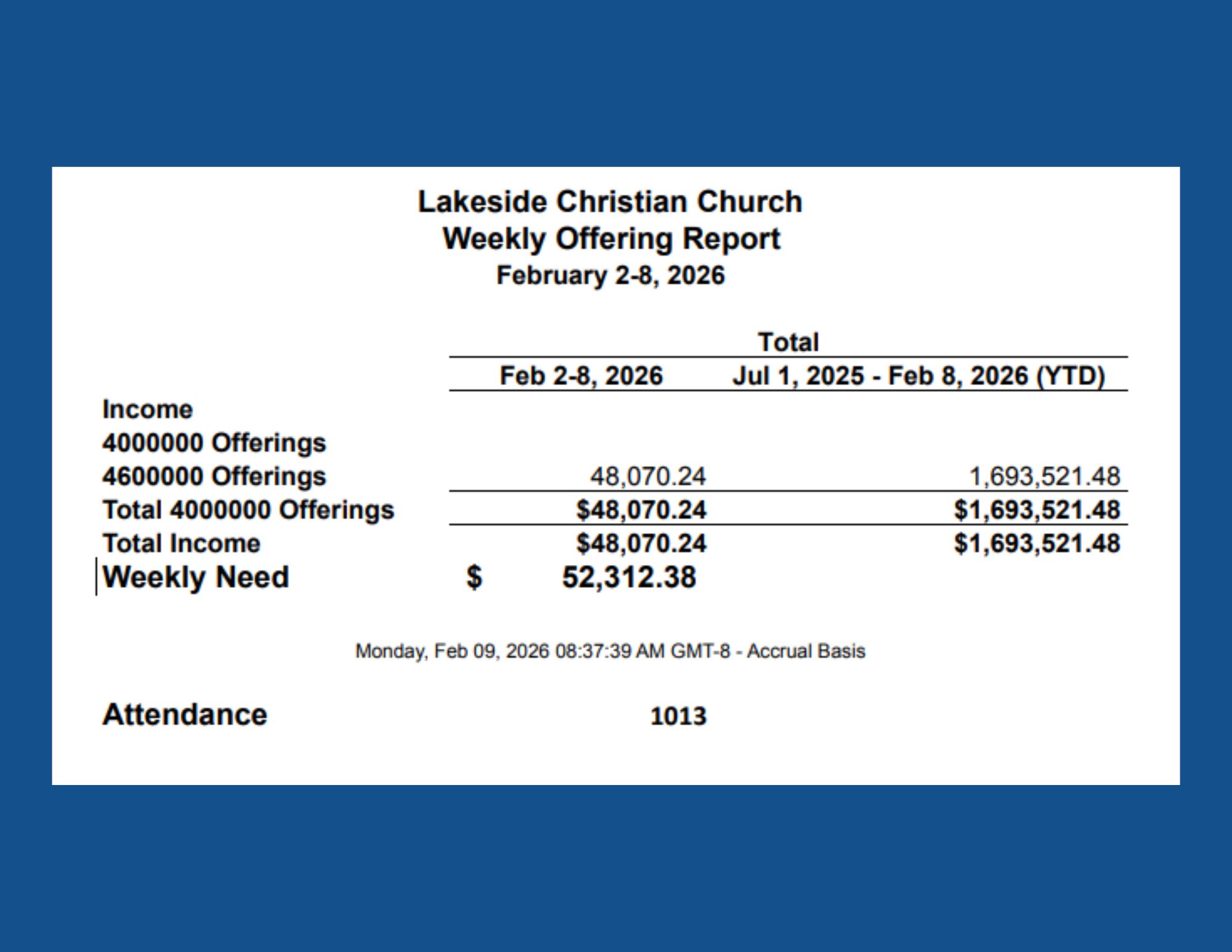Lakeside Christian Church is accredited by the Evangelical Council for Financial Accountability, which requires high standards of biblical accountability, board governance, financial transparency, integrity in fundraising, and proper use of charity resources.